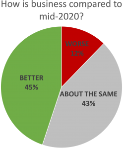Things are beginning to look up however. 45% feel business has improved again somewhat since the middle of last year, and less than 1 in 8 feel business has continued to deteriorate. With the rollout of vaccines in many countries, leading to timelines for reopening and more optimism about travel and shooting this year, we expect things to continue to improve, and faster.